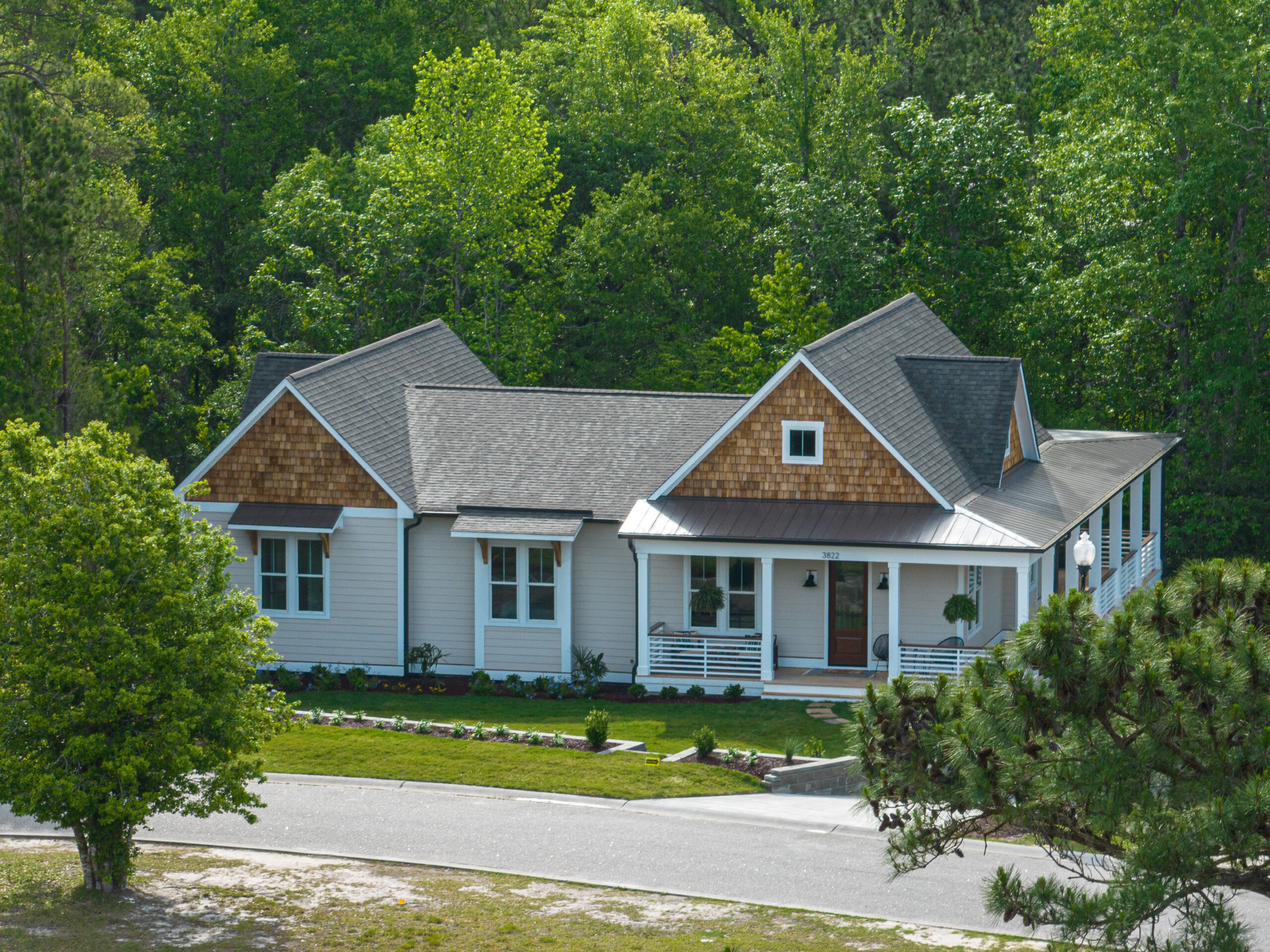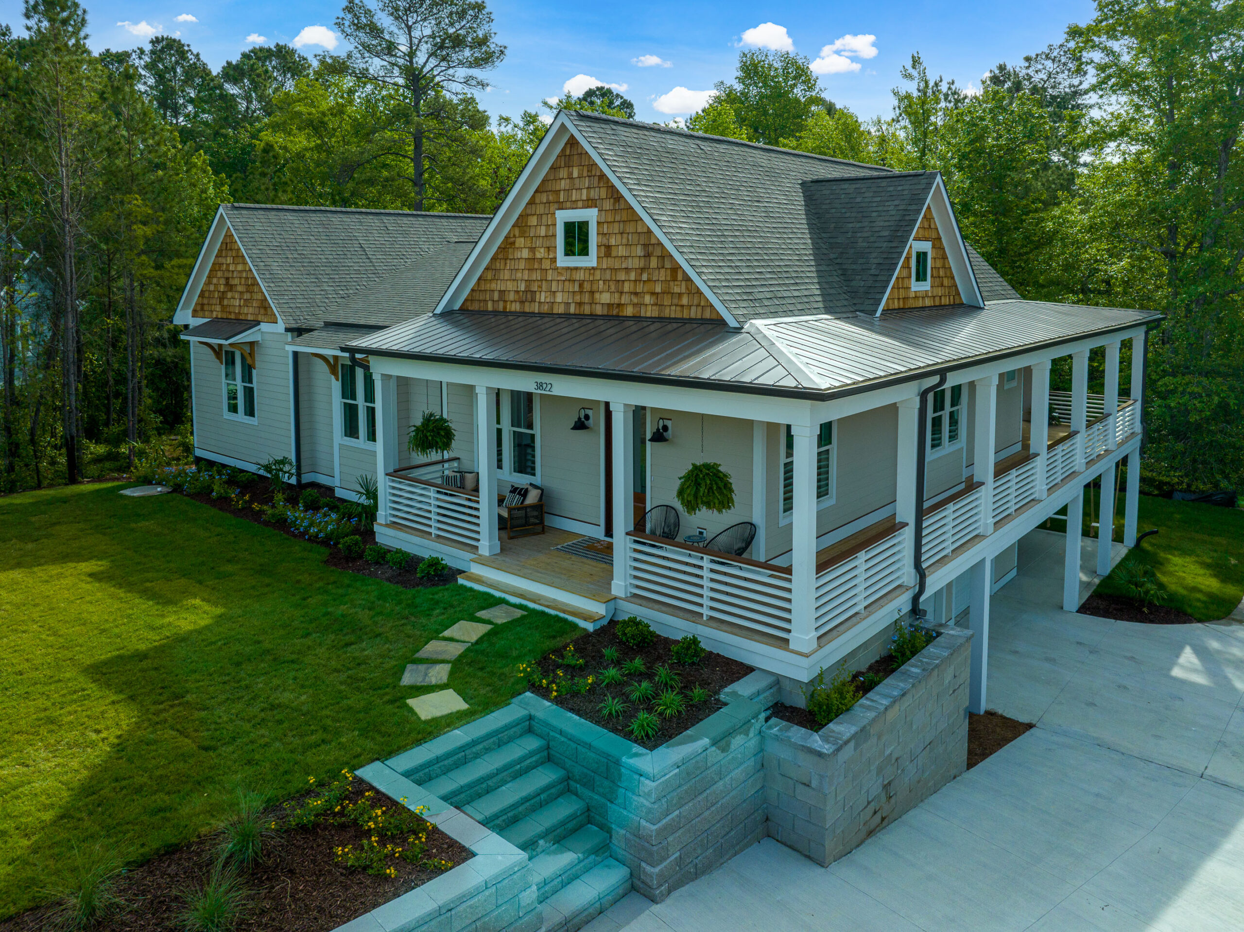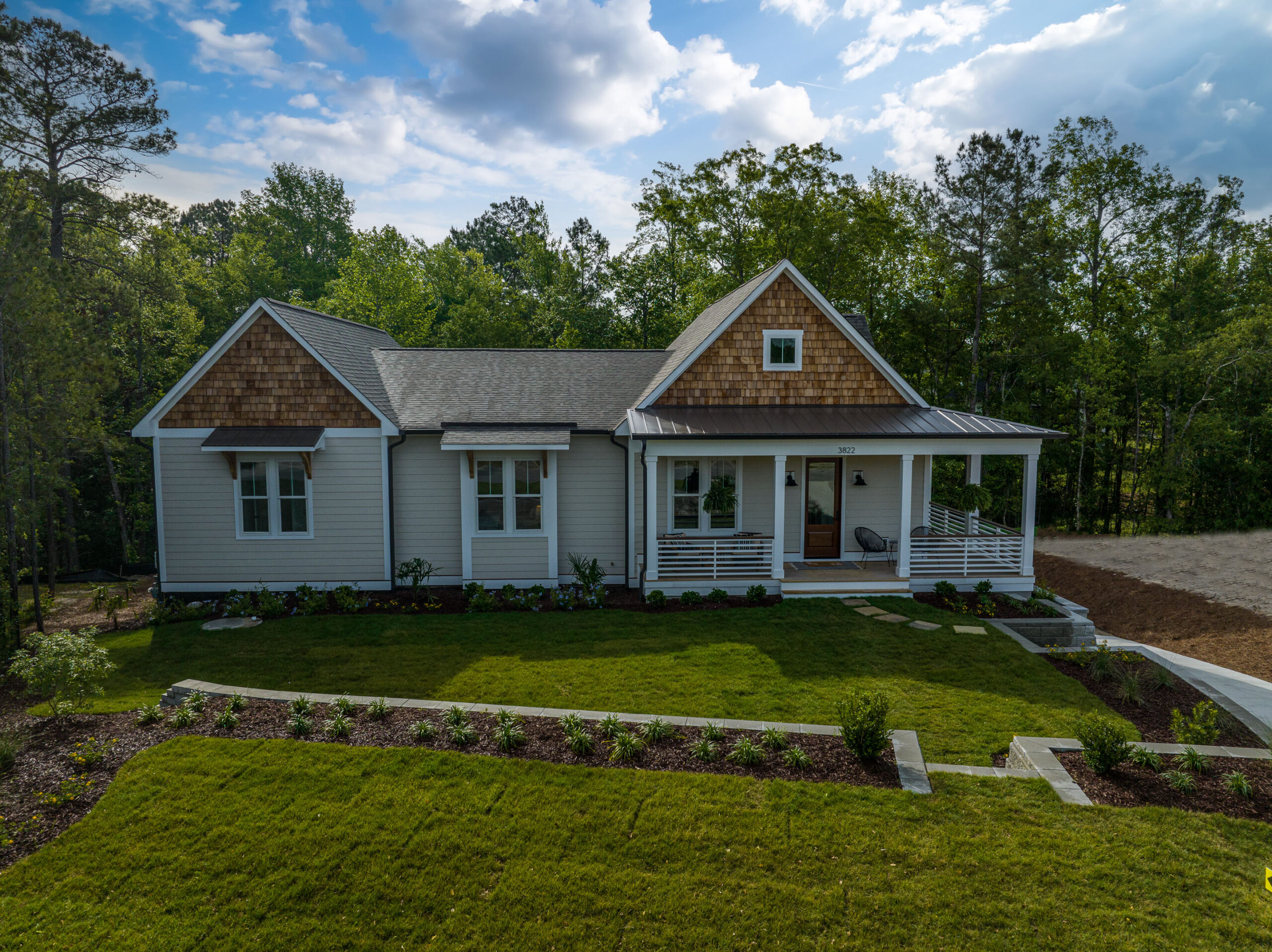 This award-winning retreat is in The Bluffs on The Cape Fear, a growing master-planned community in Leland. The one-of-a-kind ‘Yellowstone’ offers ample square footage and wrap-around porches with a large, screened porch and grilling deck help to further maximize your living space. There are separate spaces for a home office/study, wine cellar and media room. The walk-out basement offers ample storage and an additional bedroom suite. Looking to build your mountain retreat dream home right here in coastal North Carolina? Contact us today – we’d love to tell you more!